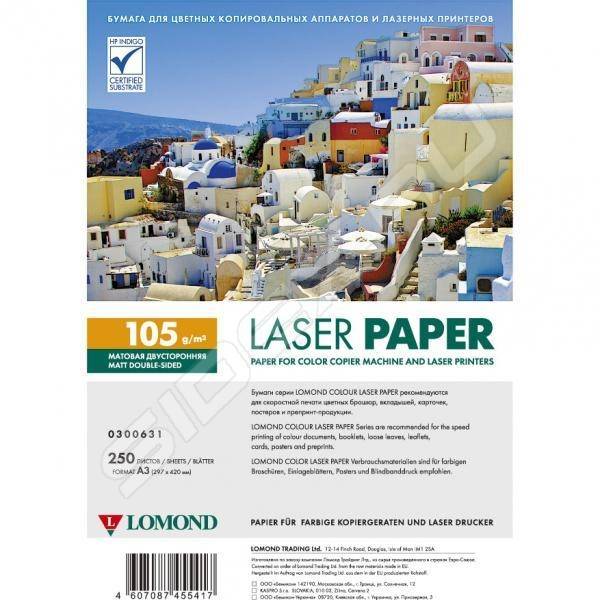 Фотобумага LOMOND Двухсторонняя Матовая, для лазерной печати, 105 г/м2, А3/250л.