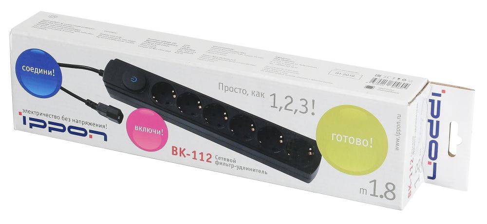 Сетевой фильтр Ippon BK-112 <1.8м> (6 розеток, вход IEC320-C14)