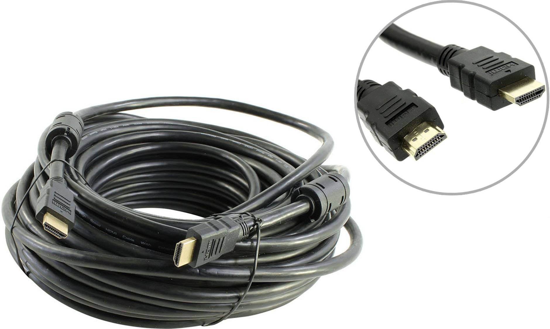 Кабель HDMI 19M/M+2 фильтра 1.4V+3D/Ethernet AOpen/Qust 20m