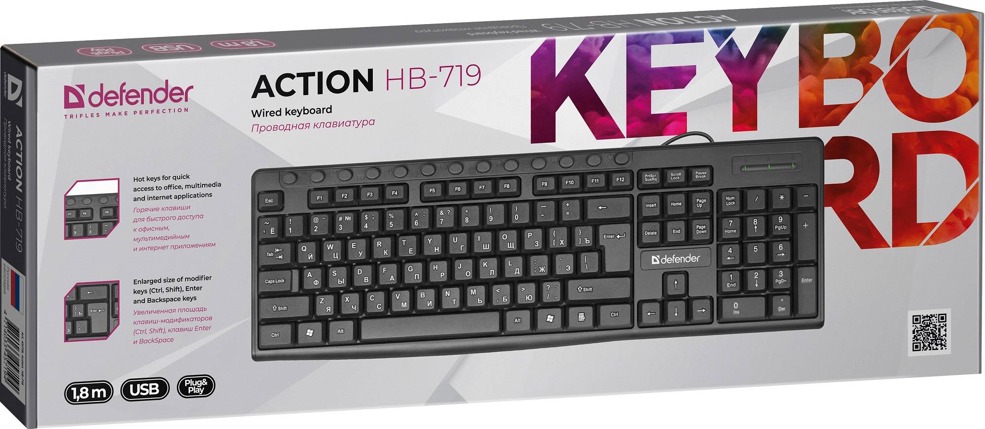 Defender Клавиатура проводная Action HB-719 RU,черный,мультимедиа