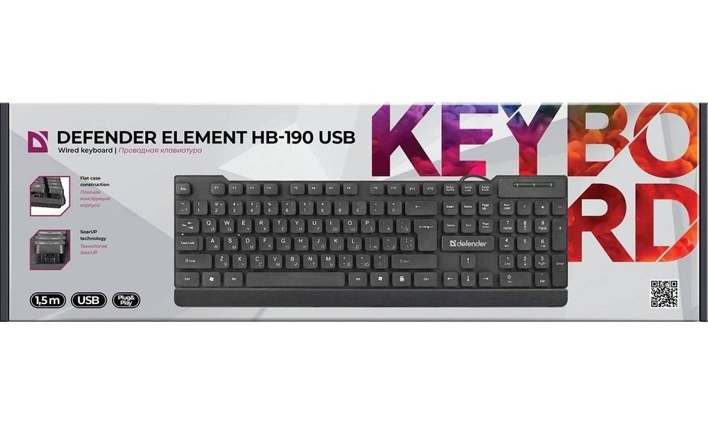 Defender Клавиатура проводная Element HB-190 USB RU, черный, полноразмерная
